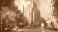 A peaceful summer day on the quiet streets of Manhattan, with tall skyscrapers and lush trees lining the road, creating a calm urban landscape, Generative Ai