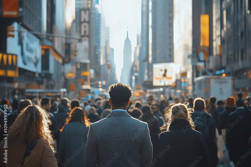 Plakat Nowy Jork - African American Man Walking Sunlit Metropolitan Street #1094999902
