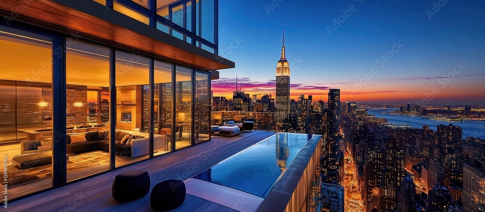 Luxury Penthouse with Infinity Pool and Stunning NYC Skyline at Sunset