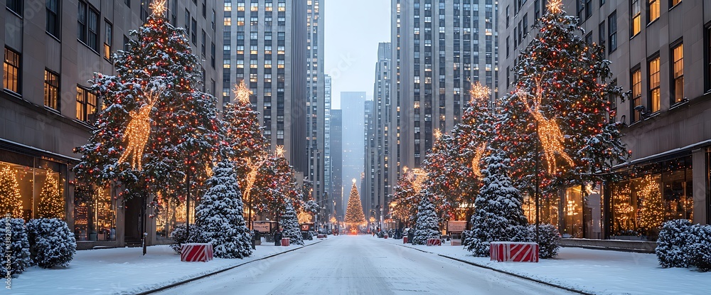 Plakat Nowy Jork - Snowy NYC Christmas Festive Avenue. #1382339518