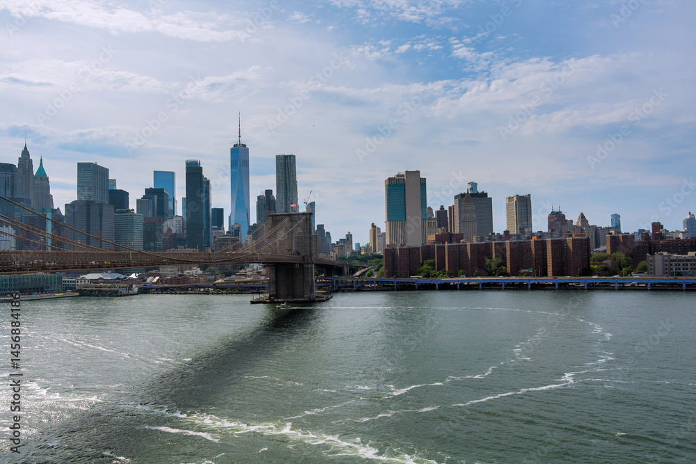 Plakat Nowy Jork - Brooklyn Bridge spans East River with backdrop of Manhattan skyline at NYC America #1456884186