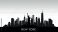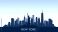 • New york city skyline silhouette with statue of liberty at sunset for urban design vector illustration
