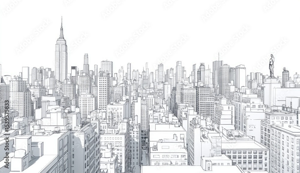 Plakat Nowy Jork - Detailed line drawing of a city skyline #1539575833