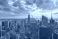 • Panoramic city skyline at sunset. Vast cityscape, vibrant colors, dramatic clouds