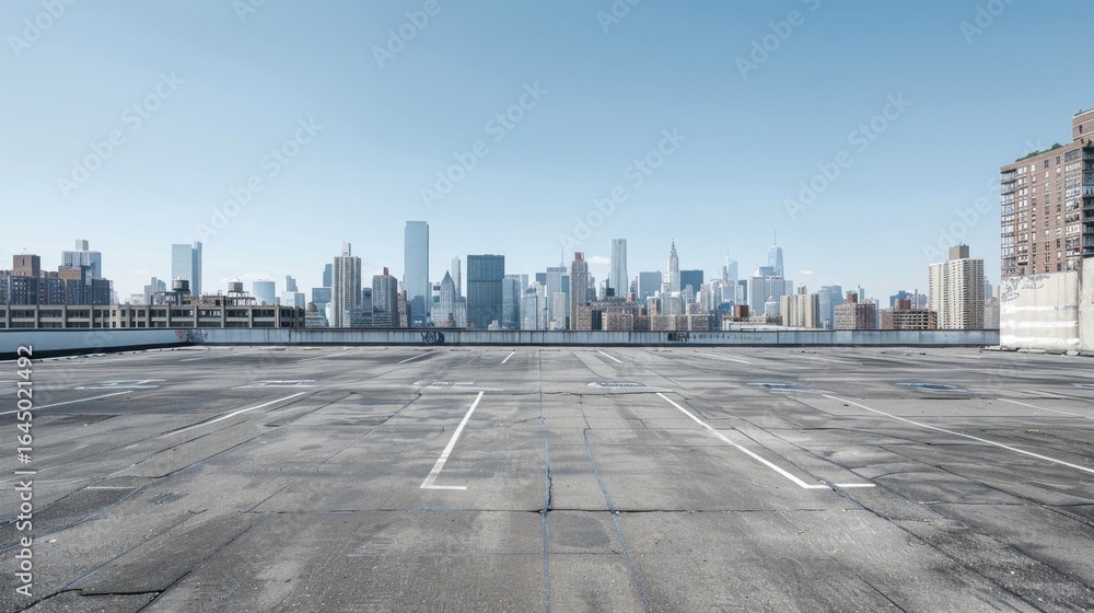Plakat Nowy Jork - Empty Rooftop Parking Lot with City Skyline View #1645021492
