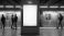 Plakat Nowy Jork - Empty advertisement frame on subway station pillar. People and fast moving train pass by. Blank... #1830102482