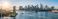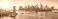 New York City skyline panorama at sunset with Brooklyn Bridge