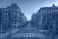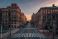 • A city street with tall buildings at sunset - Amsterdam Avenue from Columbia University, in Morningside Heights, New York City