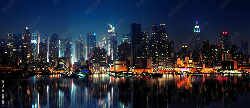Plakat Nowy Jork - View on Manhattan at night #557823850