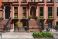 Row of townhouse entrances with stoop steps. Brownstones in Brooklyn Heights, New York City
