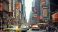 Plakat Nowy Jork - Vintage retro city with skyscraper vehicles and pedestrian with advertising sign board.... #662866762