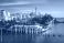 Aerial view with Lower Manhattan skyline at sunset viewed from above Hudson River