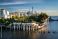 View of downtown Manhattan with the Little Island public elevated park in the foreground. New York City cityscape before the sunset.