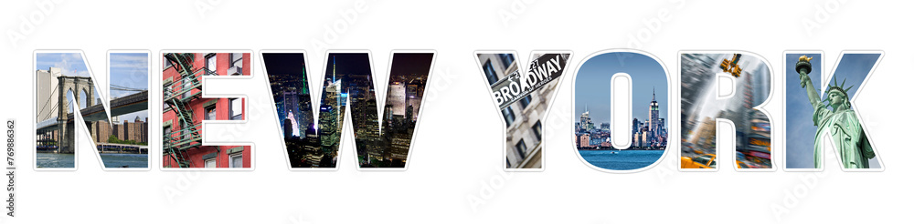 Plakat Nowy Jork - Letters NEW YORK photo collage isolated on transparent background, png file #769886362