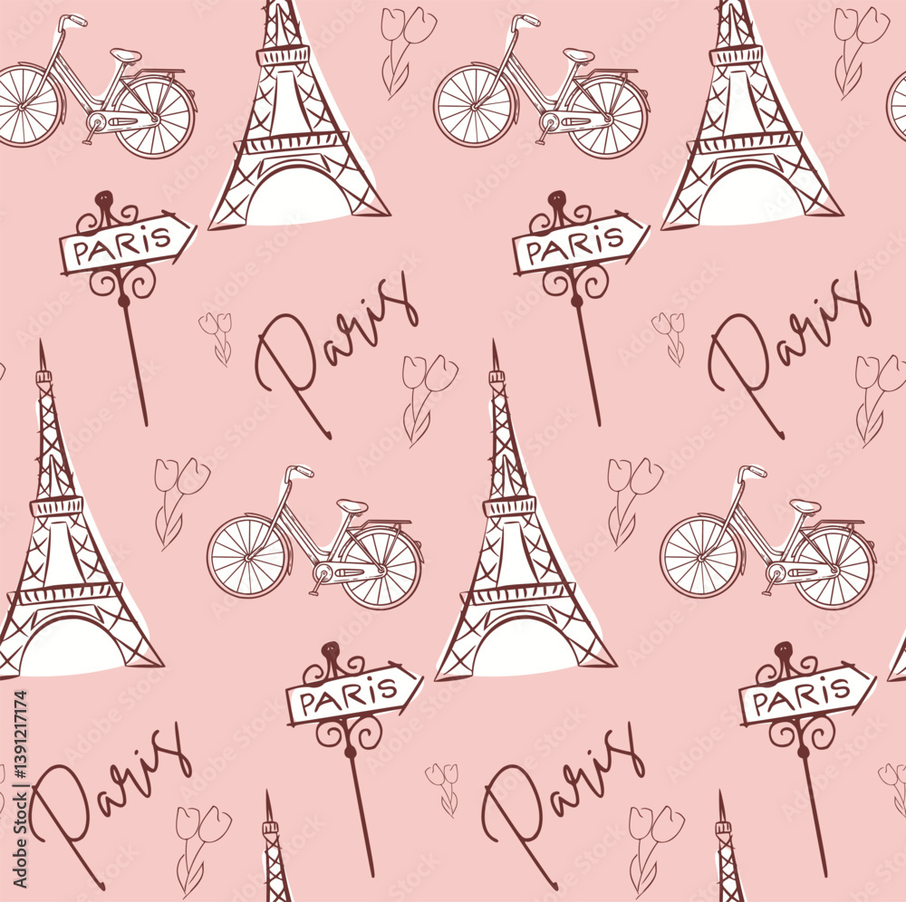 Plakat Paryż - paris pattern background pink. #1391217174