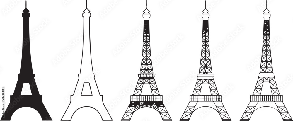 Plakat Paryż - vector eiffel tower silhouettes outline to detailed progressive line art scalable icons for paris... #1654985178