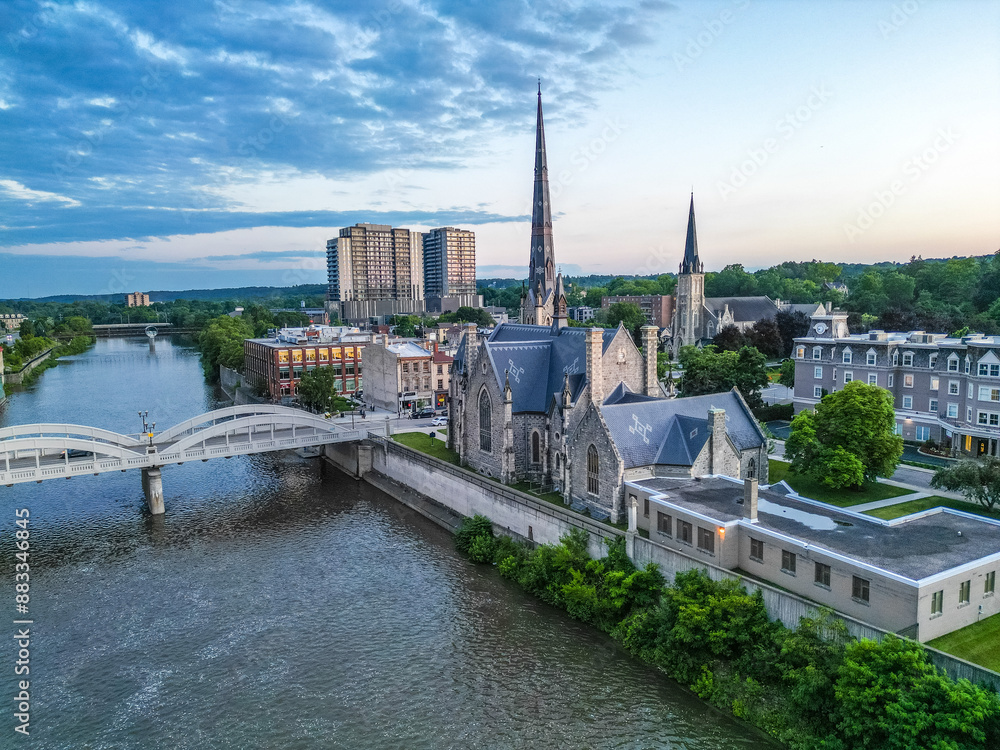 Plakat Paryż - Aerial Birds Eye view of Cambridge Waterloo region Ontario Toronto Canada architecture European... #883346845