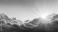 Malowniczy zimowy pejzaż pokazuje śnieżne wzgórza i zakryte śniegiem drzewa. Opadające płatki śniegu tworzą delikatną zasłonę nad cichym krajobrazem.