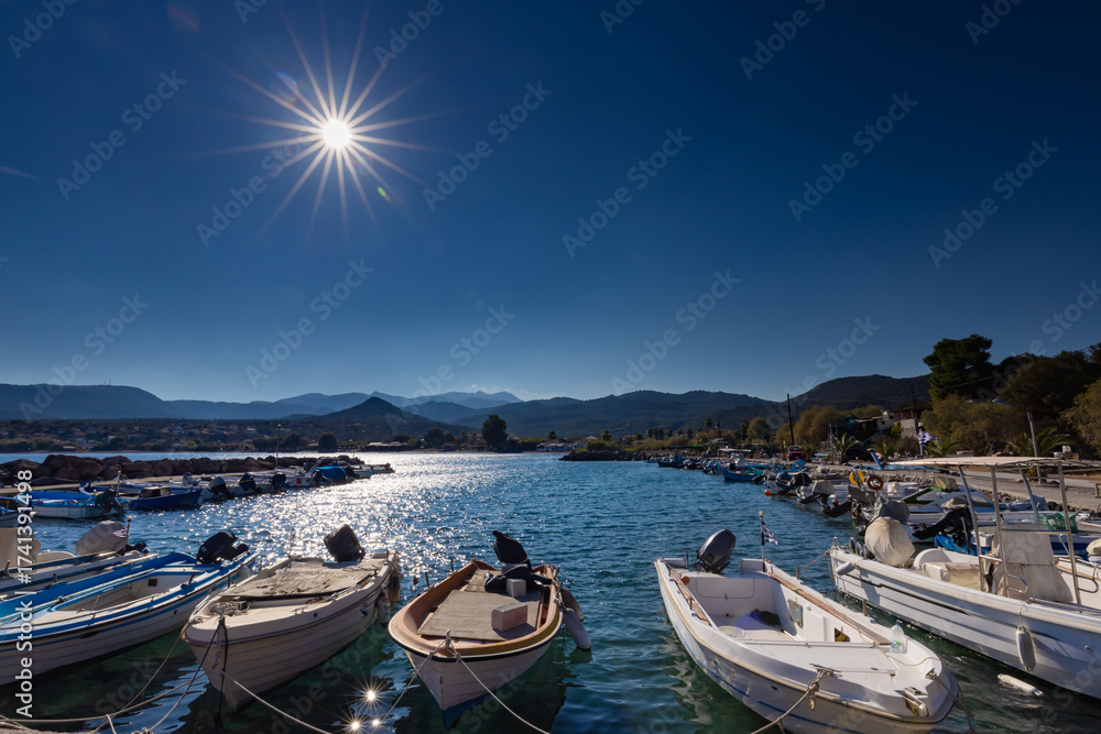 Plakat Pejzaże - Krajobraz z niebieskim niebem i górami z greckiej, wulkanicznej wyspy Lesbos, położonej nad... #1741391498