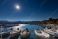 • Krajobraz z niebieskim niebem i górami z greckiej, wulkanicznej wyspy Lesbos, położonej nad Morzem Egejskim