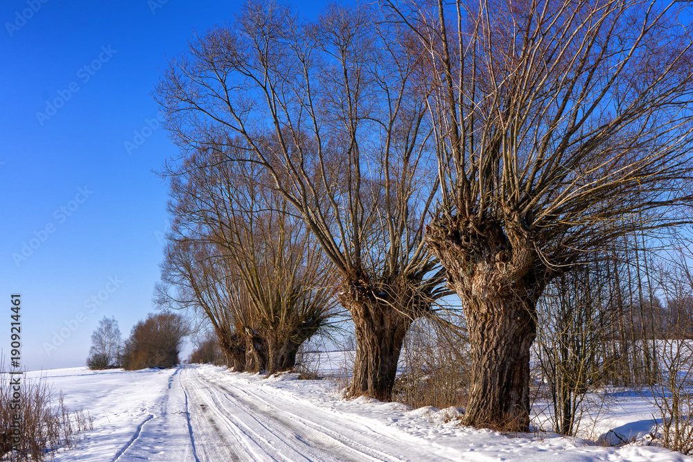 Plakat Pejzaże - Zimowy pejzaż z wierzbami, Podlasie, Polska #1909214461
