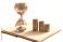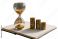 Plakat Pojazdy - Hourglass and gold coin stacks on open notebook, clean isolated style on white background,... #1743367653