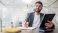 Plakat Pojazdy - Man working on a tablet and taking notes in a modern office space #1768721595