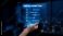 • A futuristic hand displaying a digital marketing dashboard featuring key elements like web, social media, content, SEO, and advertising strategies for businesses. Synapse