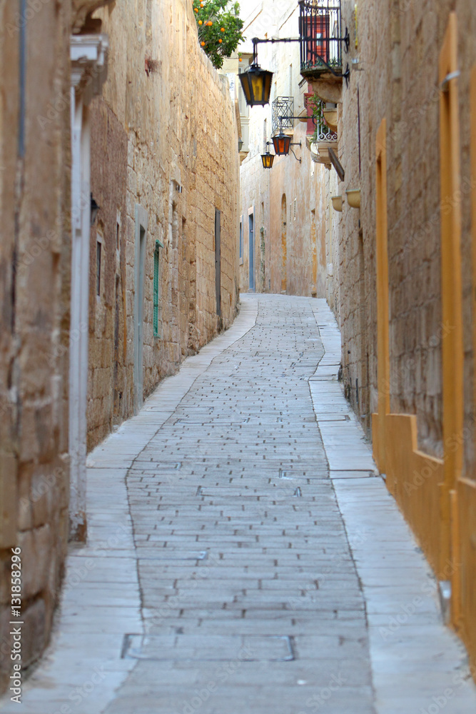 Plakat Uliczki - Stara, zabytkowa uliczka w miejscowości Mosta na Malcie #131858296