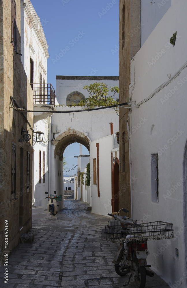 Plakat Uliczki - biała uliczka w Lindos (Grecja, Rodos) #184957059