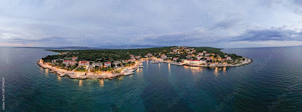 • Lun to najbardziej na północ położona miejscowość turystyczna na wyspie Pag w Chorwacji. Nocą z lotu ptaka.