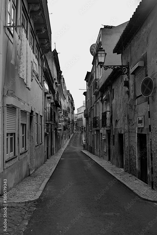 Plakat Uliczki - Wąska uliczka w Lizbonie #380579343