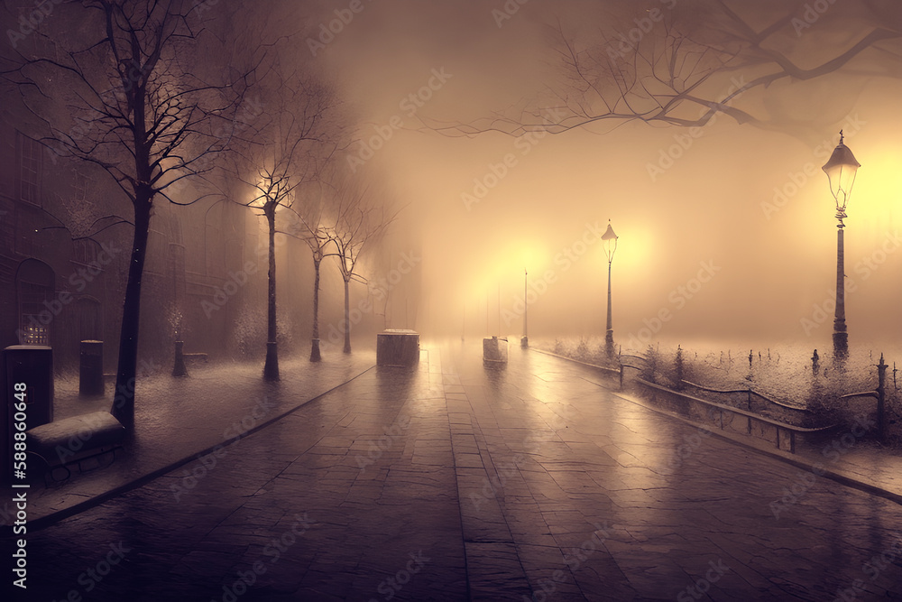 Plakat Uliczki - Magiczna ciemna aleja. Abstrakcja - Generative AI #588860648