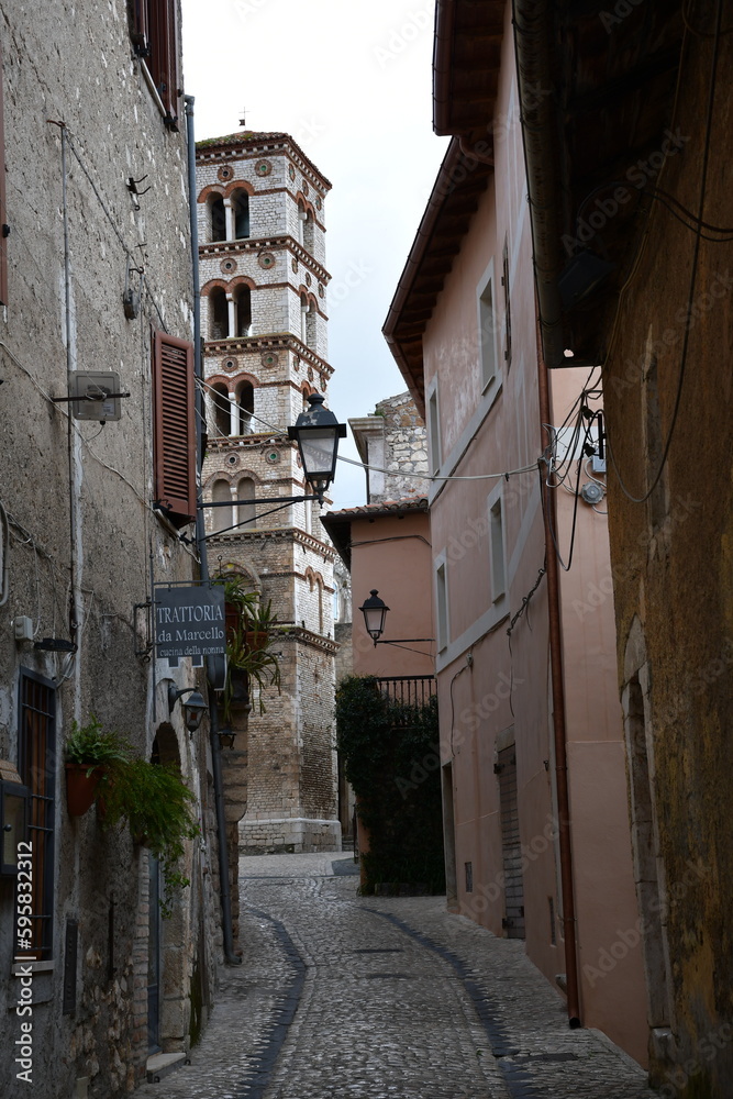Plakat Uliczki - Uliczka we włoskim miasteczku Sermoneta, Italy. #595832312