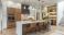 • A contemporary kitchen with pendant lights hanging over the island and furniture, creating a stylish and well-lit space.