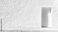 • White textured wall with recessed door, bright daylight. Exterior Architecture