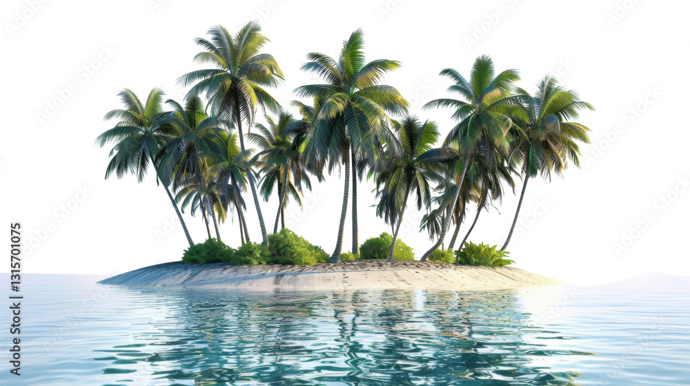 Plakat Wyspy - Tropical island with palm trees on transparent background reflecting on water #1315701075