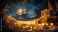 • Gold coins scattered across a sandy beach, piles of treasure chests half-open with jewels spilling out, pirate ships anchored in the distance. A dark tropical island looms in the background