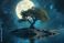 • Enchanting tree on small island illuminated by full moon in serene night sky, Enchanting tree on small island under full moon in serene landscape Fantasy nature concept