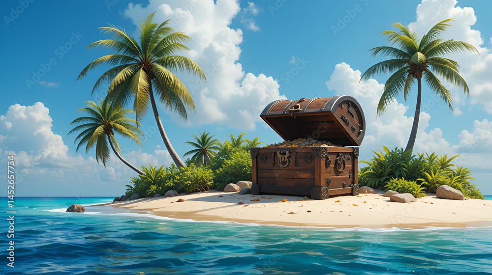 Plakat Wyspy - Pirate treasure chest on a deserted island #1452657734