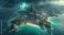 • Epic aerial view of a fantasy city on a star-shaped island under a storm.