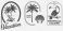 • Vintage Tropical Island Logos featuring Palm Trees, Beach Chairs, Seashells, and a Toucan for a Vacation or Island Themed Design