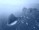 • Scenic aerial view of Ti top island in Halong bay in Vietnam with boats and islands