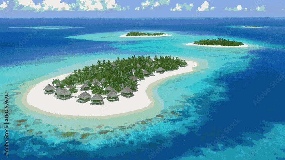 Plakat Wyspy - Jungle Chroma The most beautiful island isolated watercolor vector illustration svg #1610576212