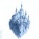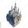• A fairytale castle on a floating island with waterfalls against a black background illustration