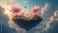 • floating island fantasy: pink flowers, hummingbirds, and butterflies in the sky