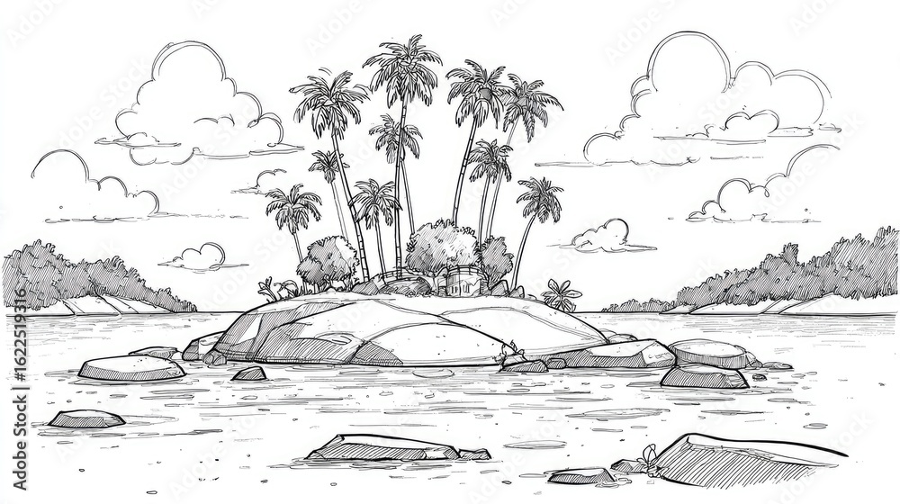 Plakat Wyspy - Hand-drawn illustration of a tropical island. #1622519316