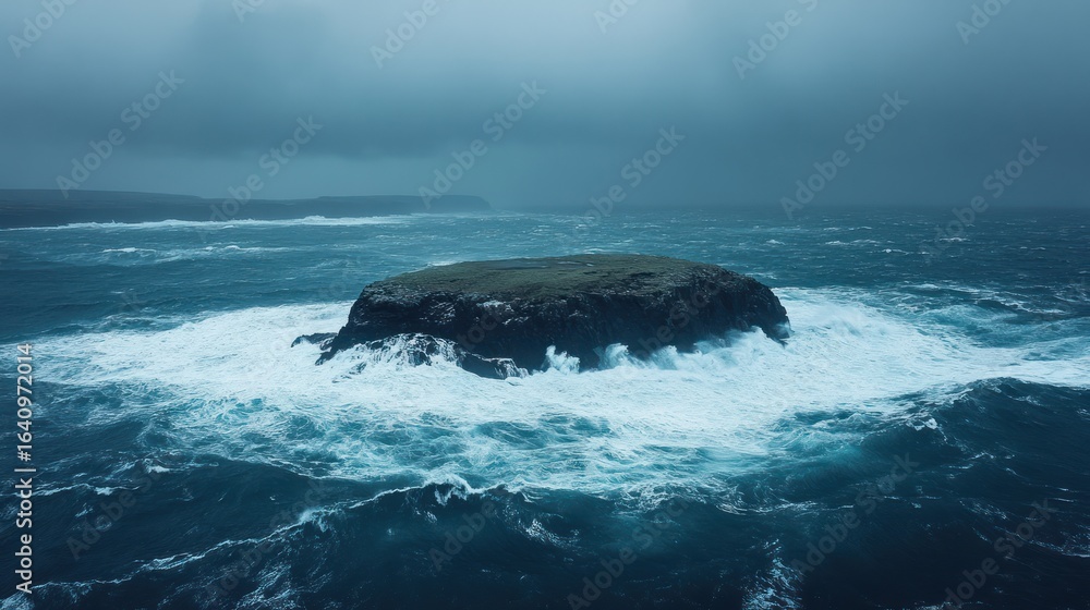 Plakat Wyspy - Stormy sea surrounds small island #1640972014