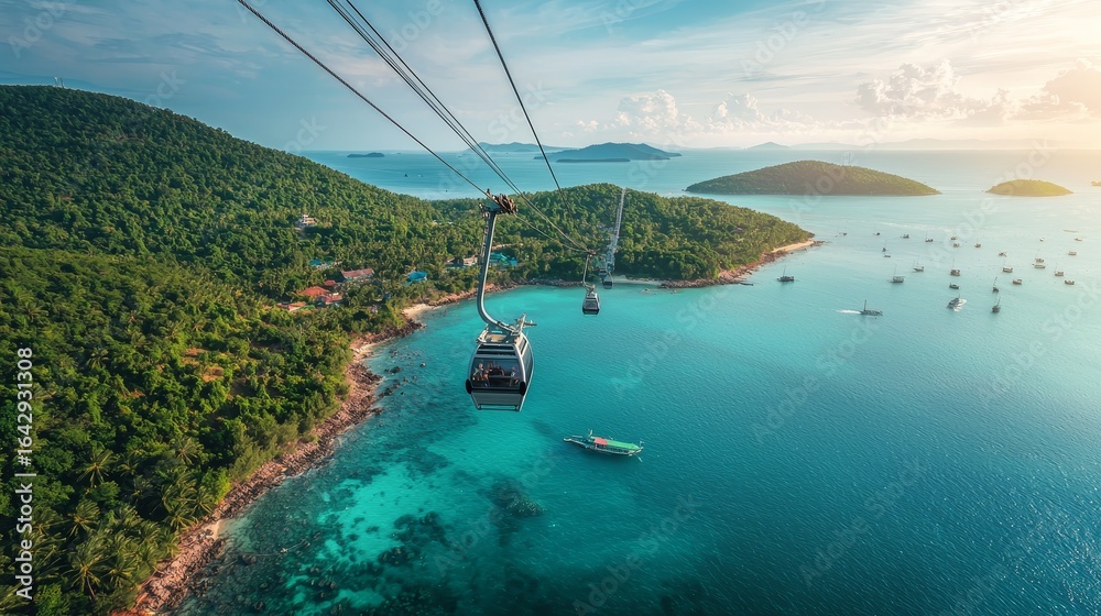 Plakat Wyspy - View of longest cable car ride in the world, Phu Quoc island, Vietnam. Below is seascape with... #1642931308