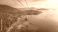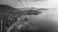 • View of longest cable car ride in the world, Phu Quoc island, Vietnam. Below is seascape with tropical islands and boats.